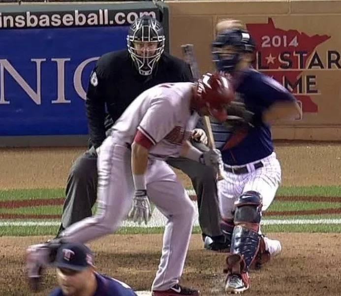"Time, that's interference!" (point at the batter) "That's interference!"